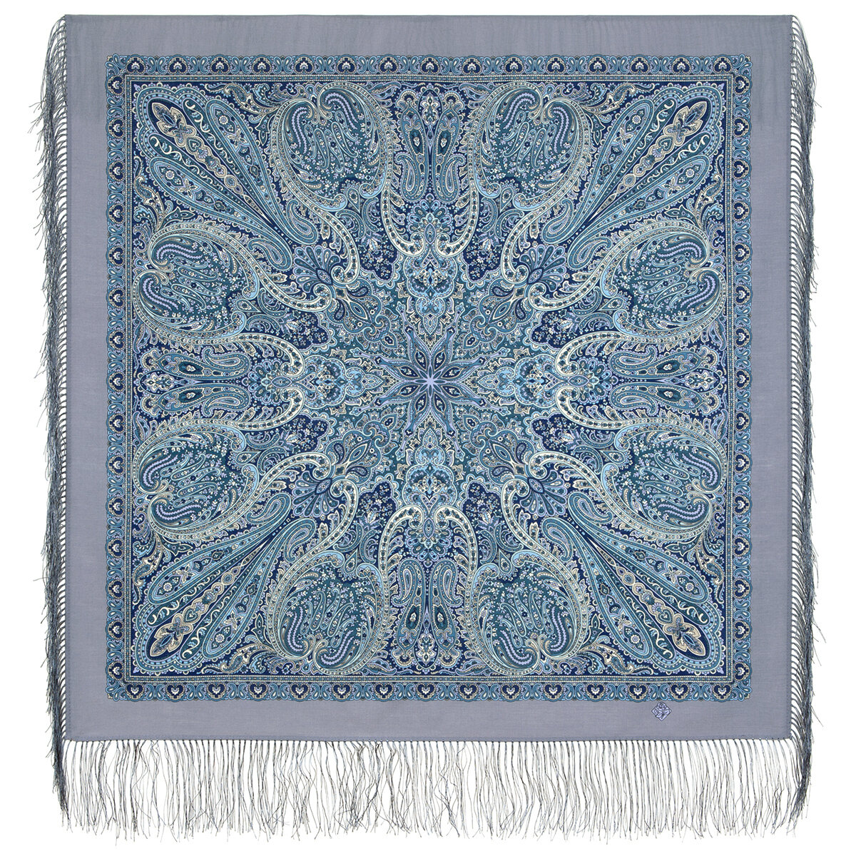 Платок Павловопосадская платочная мануфактура для женщин,89х89 см, серый интересное:
