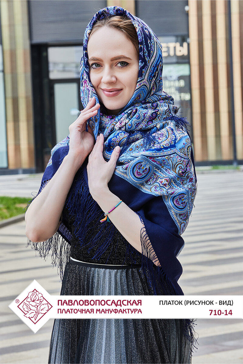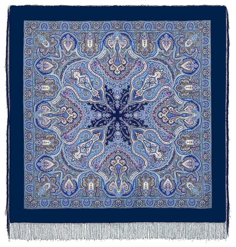 Платок Павловопосадская платочная мануфактура для женщин,146х146 см, синий интересное: