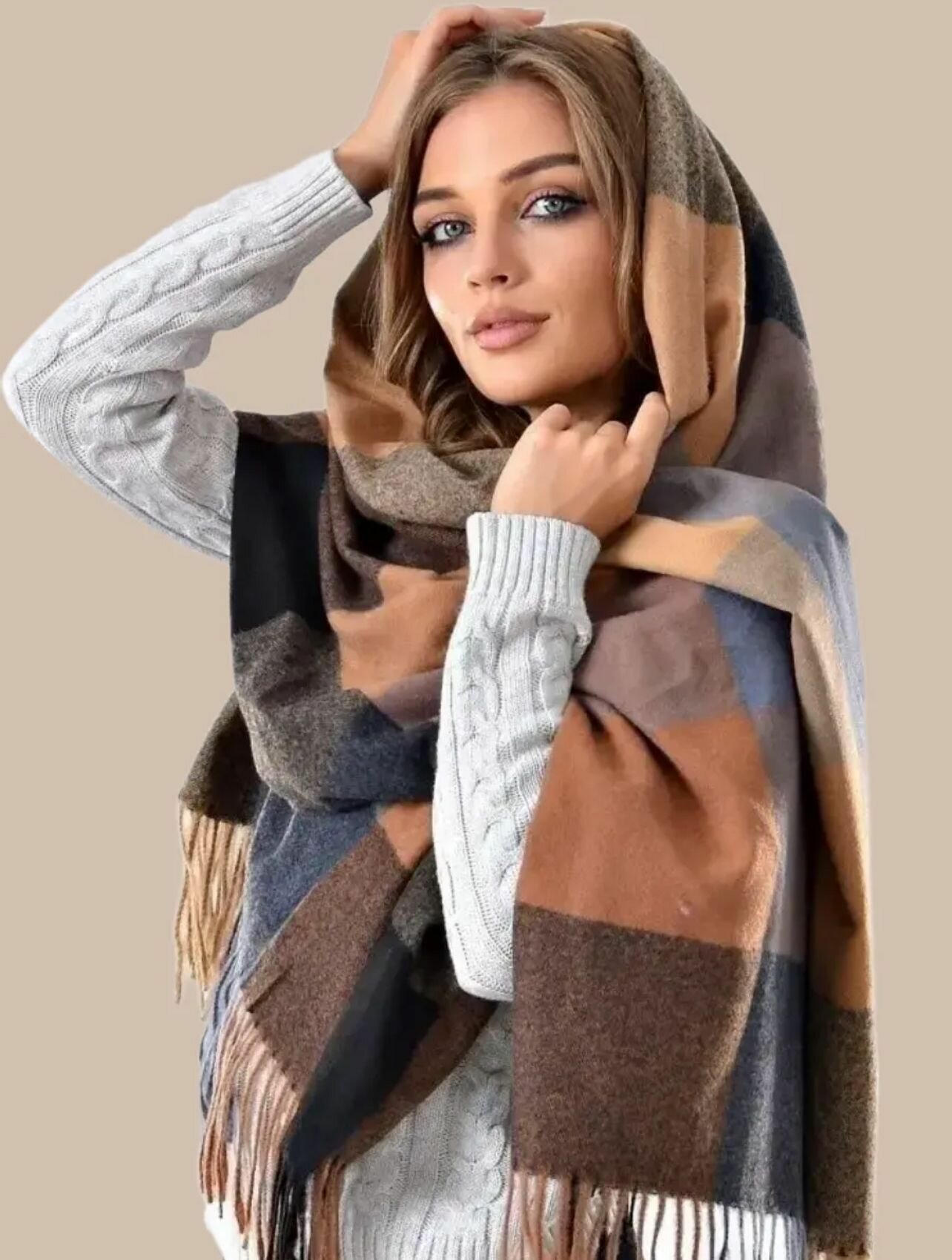 Палантин для женщин,180х70 см, бежевый