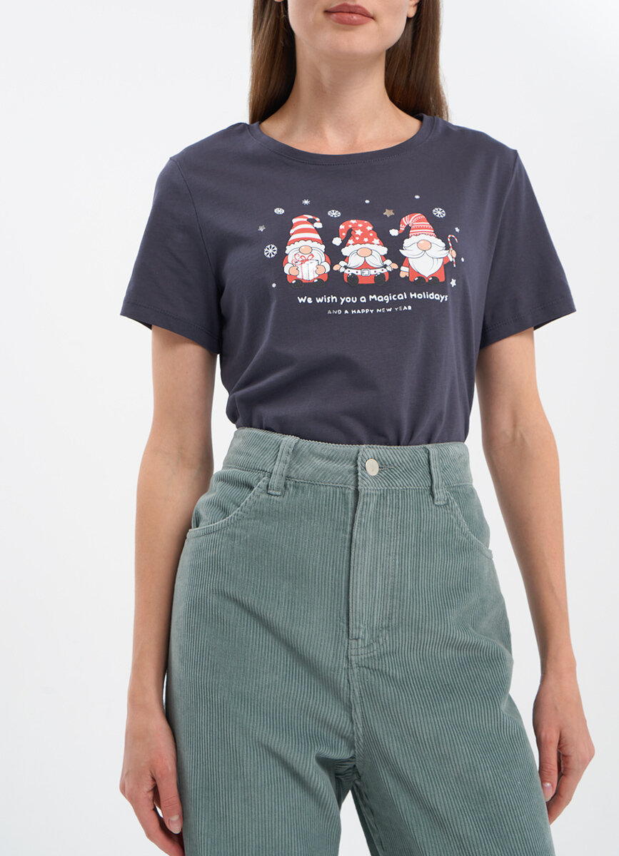 Футболка для женщин, FUNDAY, VTW5B9F16-68, темно-синий, S (RU 44)