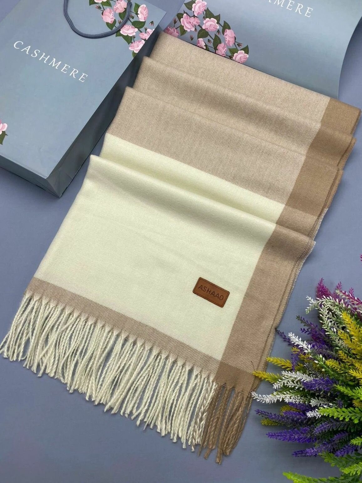 Купить Палантин Cashmere для женщин,180х70 см, бежевый/коричневый