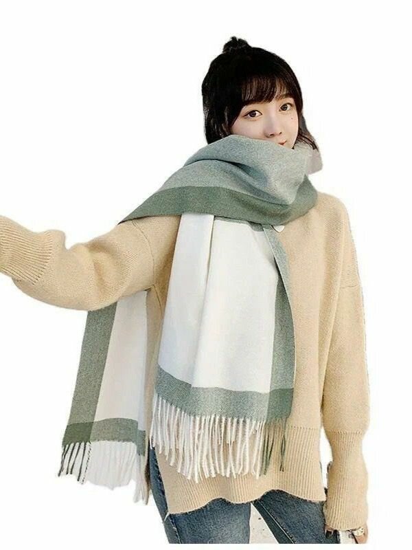 Палантин женский / Шарф эко-кашемир / Тренд 2024 / Демисезон, зима / Зелёный