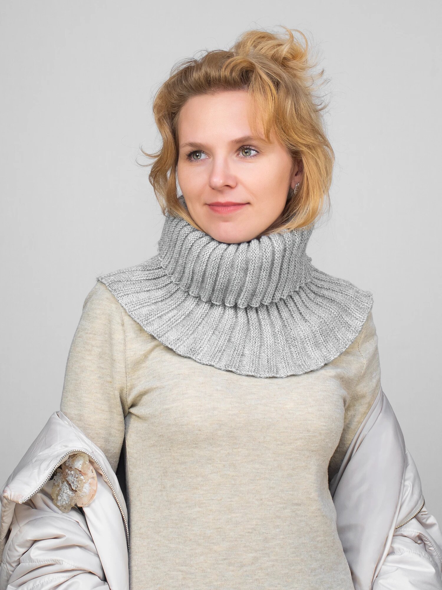 Купить Снуд LanaCaps для мужчин и женщин,30х18 см, универсальный, светло-серый