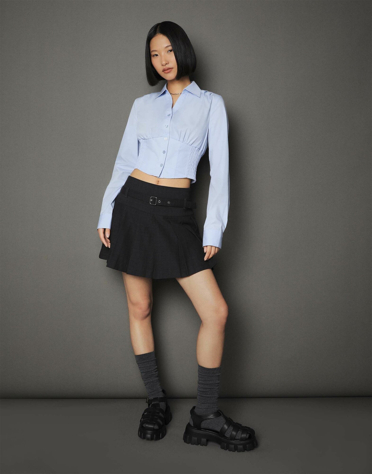 Школьная рубашка Gloria Jeans, размер XS/158-164, голубой