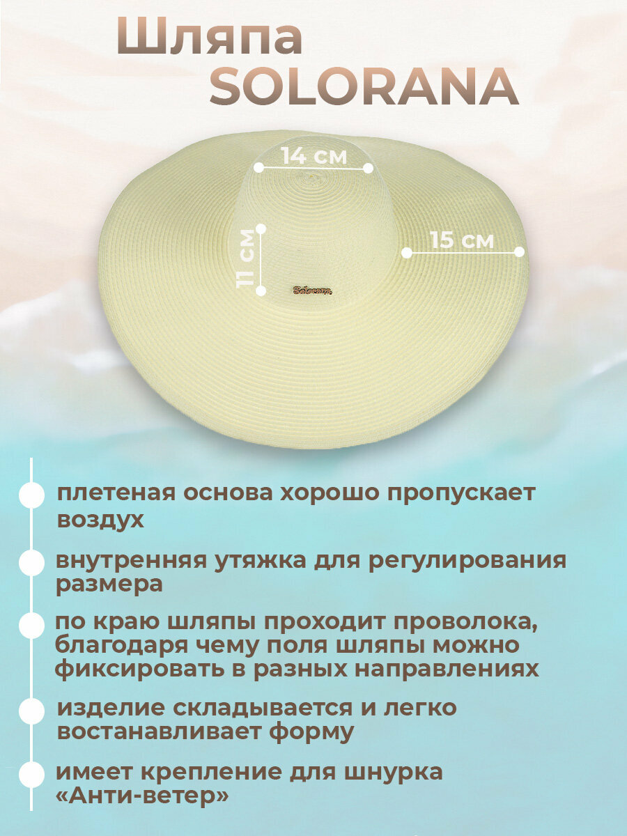 Шляпа женская Solorana, летняя, пляжная с широкими полями, бежевая, размер 56