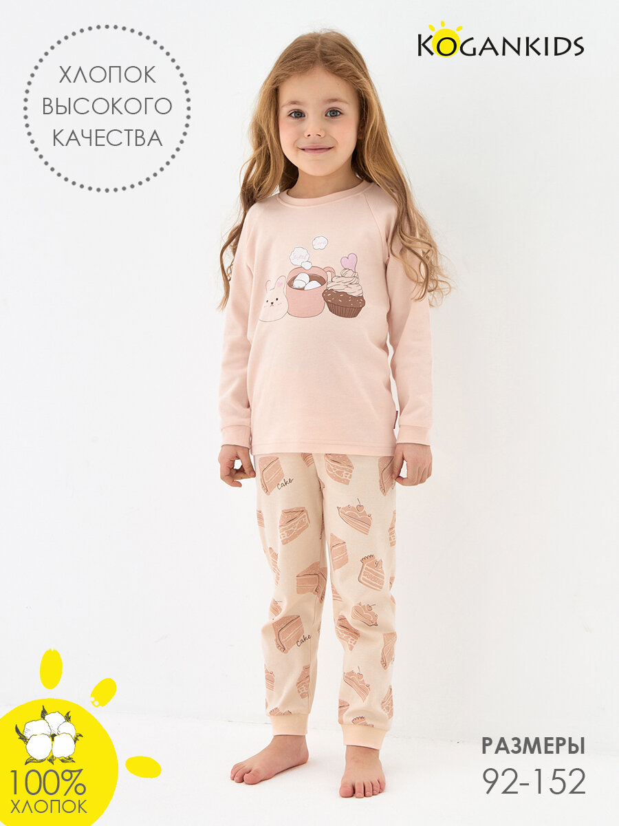Пижама для девочки,KOGANKIDS 371-310-36,пудровый набивка пирожное, 104 / 4 года