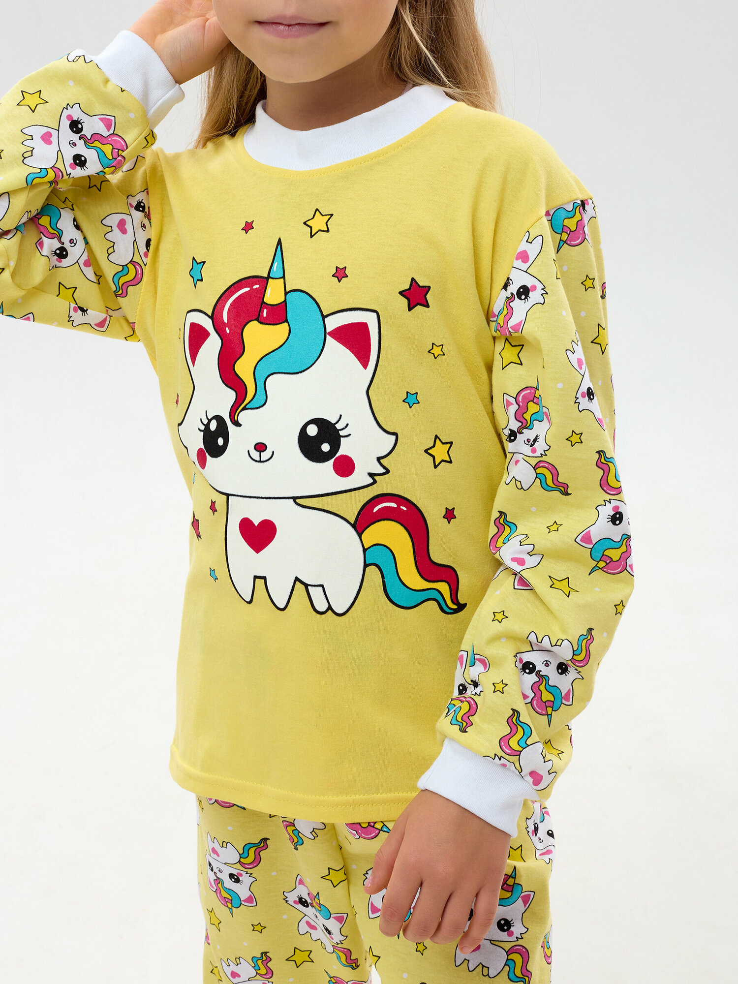 Хлопковая пижама без начеса, желтый единорог, размер 116