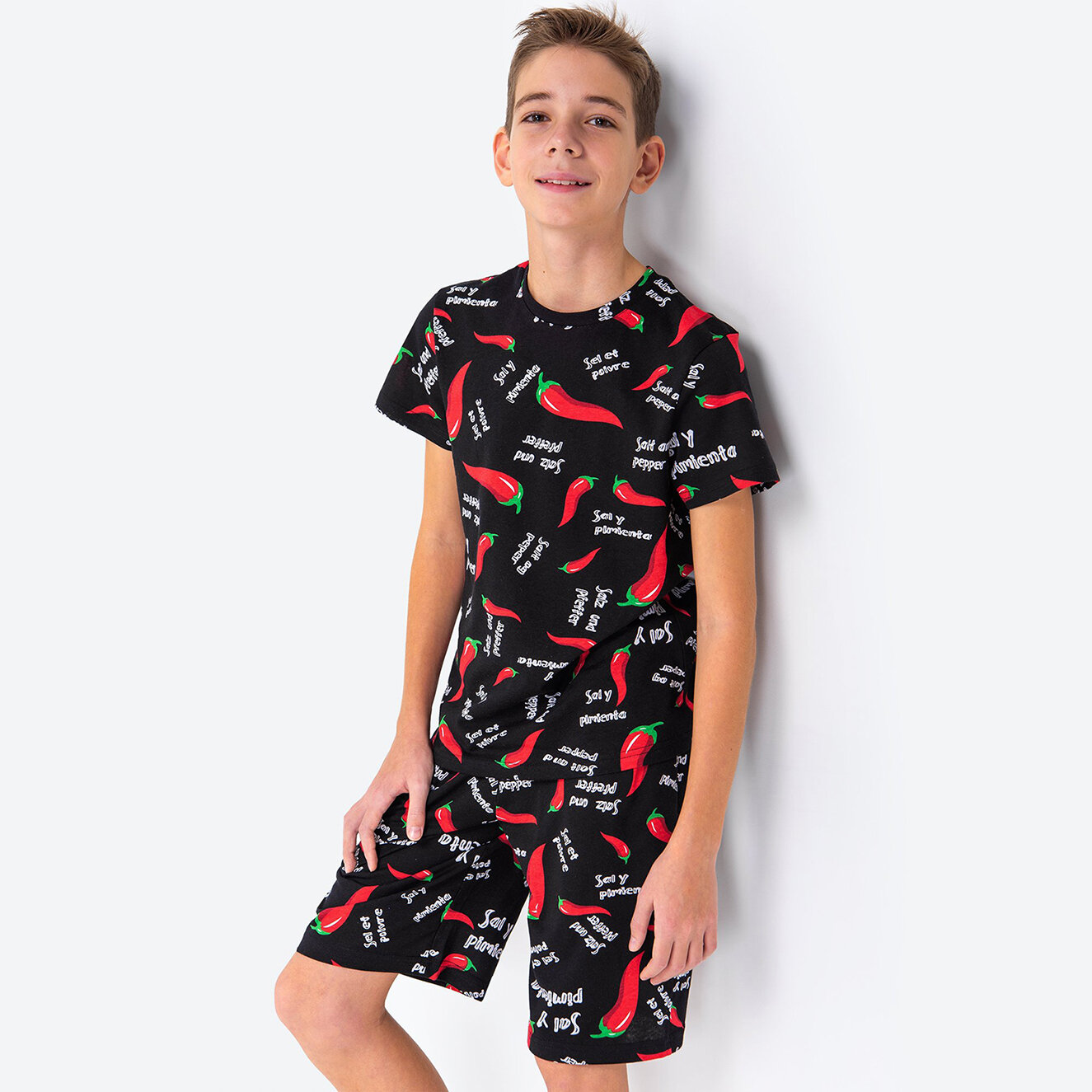 Пижама с шортами детская хлопковая Happyfox HF4872SP крупные.перцы.черный 140