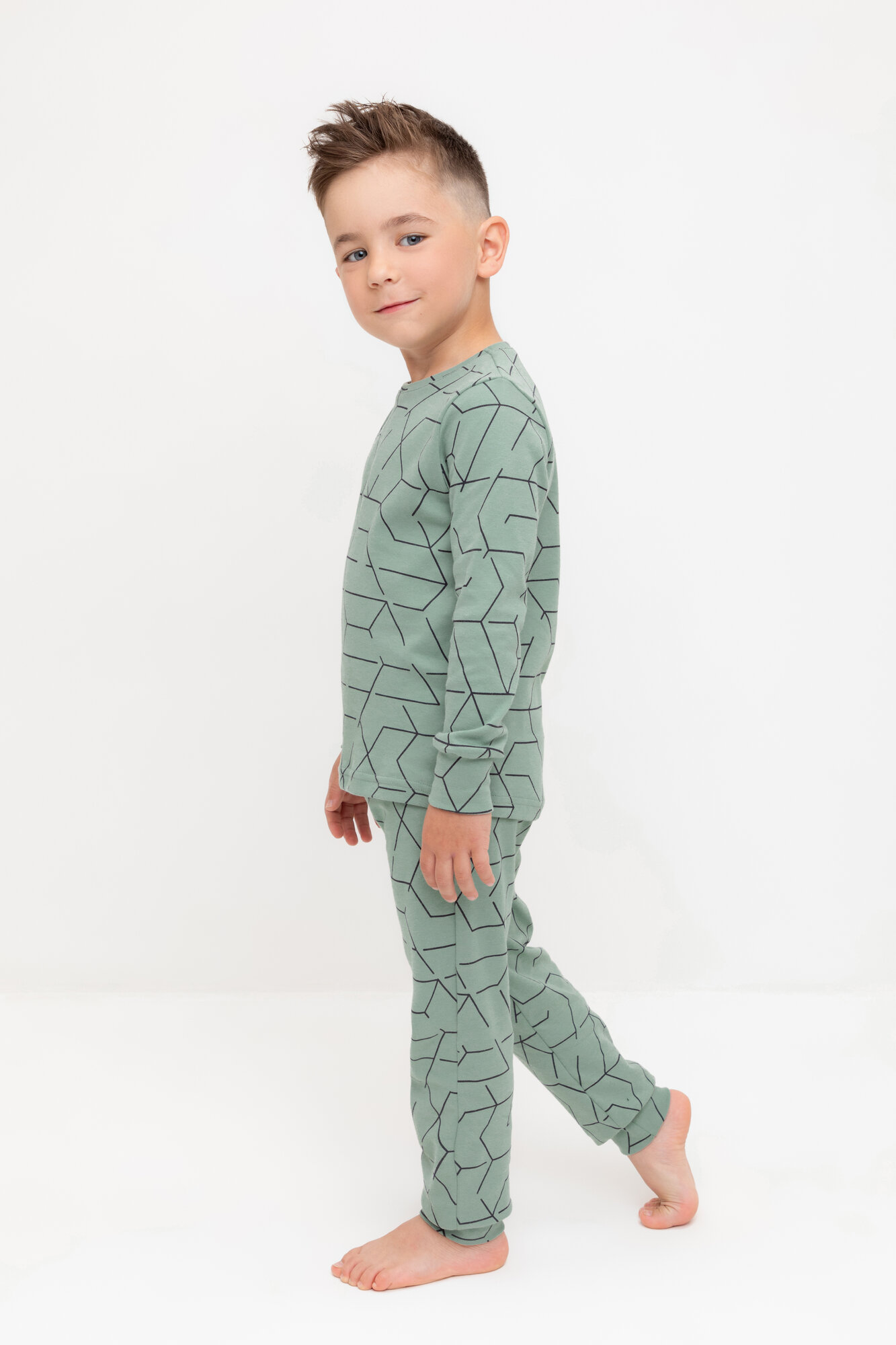 Пижама для мальчика из натурального хлопка, Crockid К 1552/эвкалипт,геометрический рисунок р 64/122