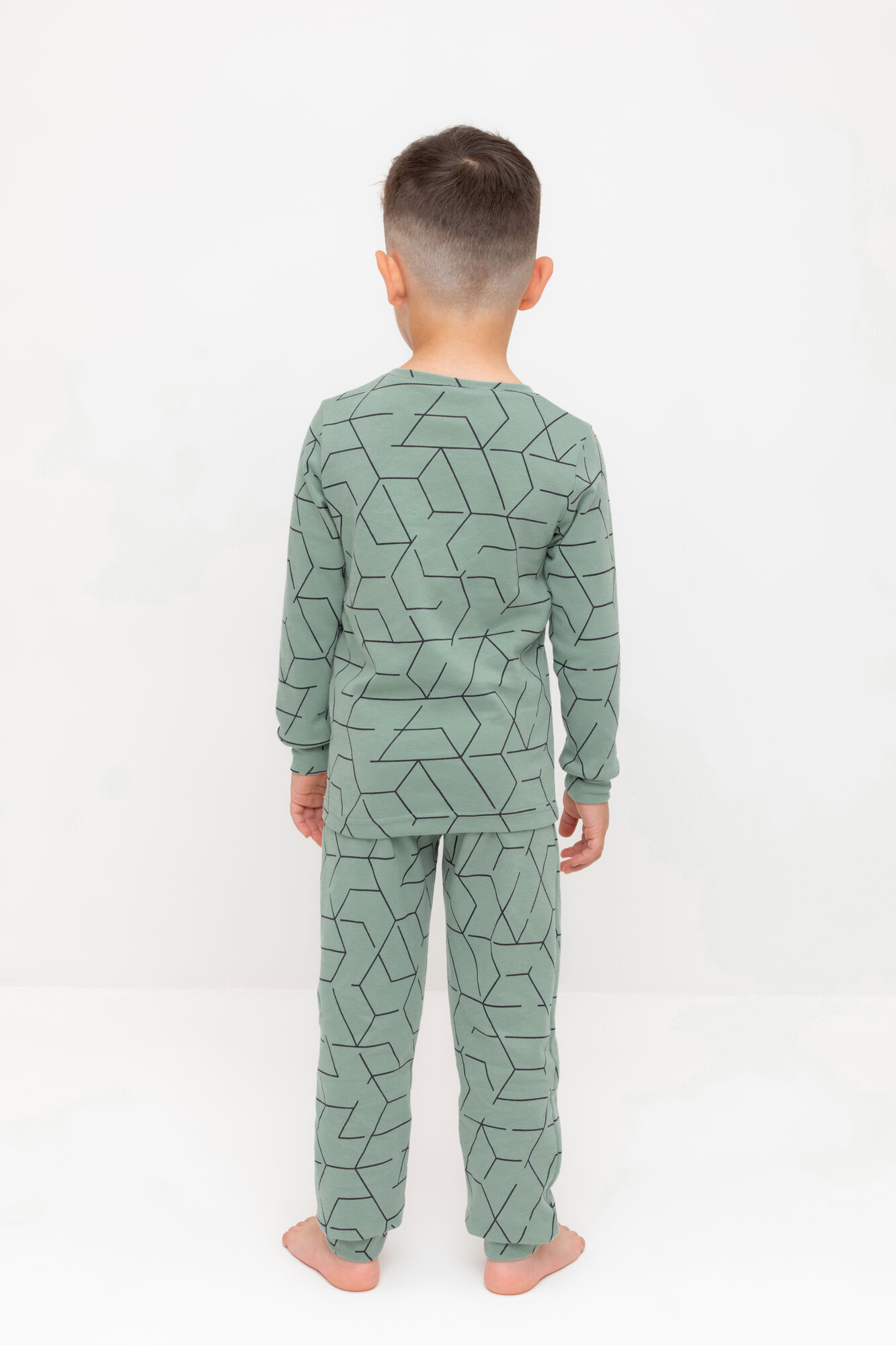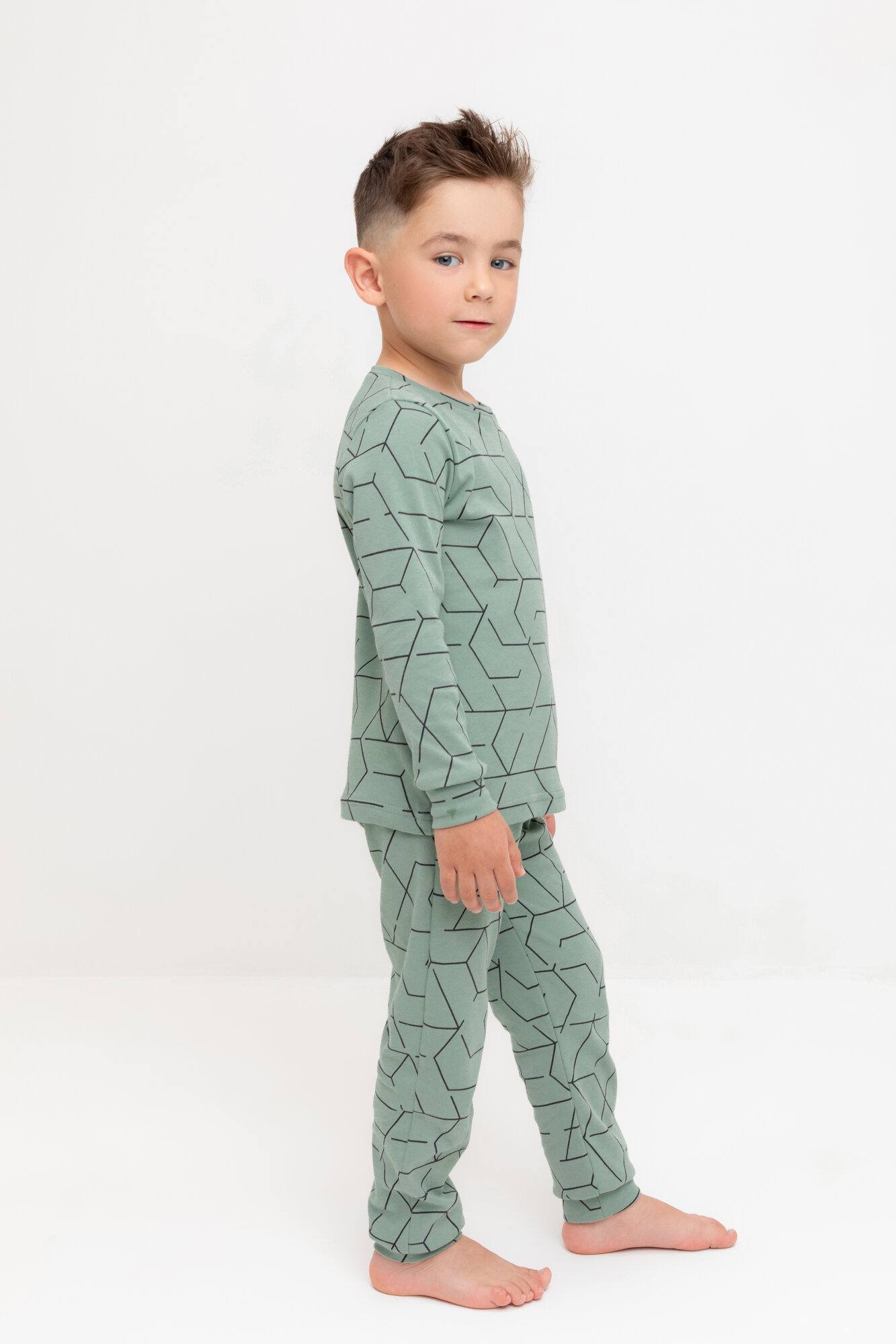 Пижама для мальчика из натурального хлопка, Crockid К 1552/эвкалипт,геометрический рисунок р 68/134