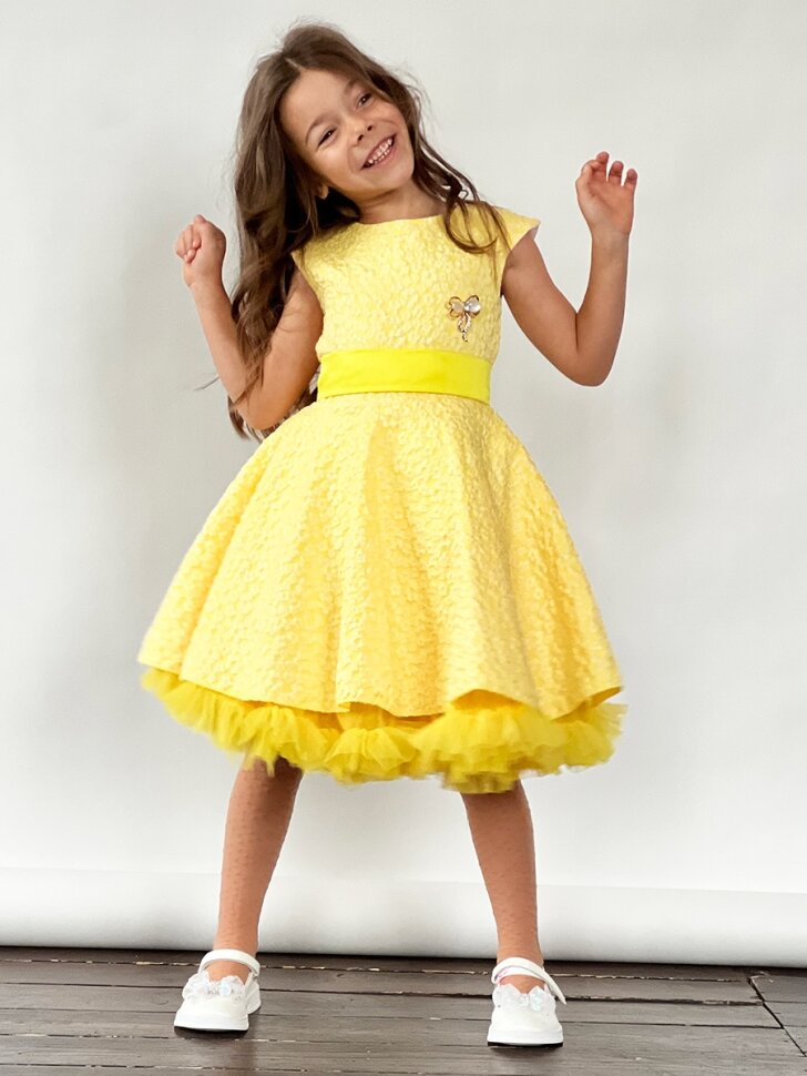 Платье для девочки праздничное бушон ST36, цвет желтый (128-134)