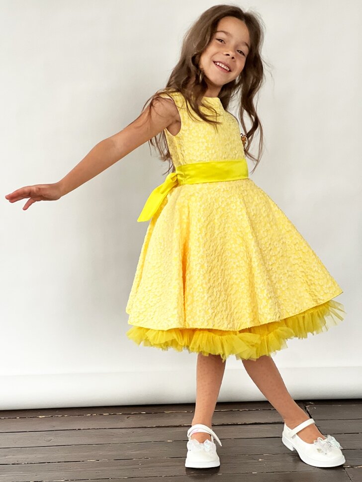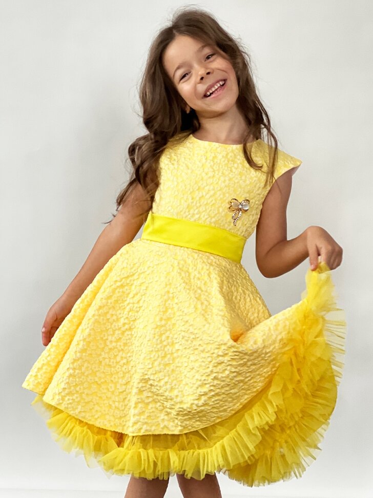 Платье для девочки праздничное бушон ST36, цвет желтый (128-134)
