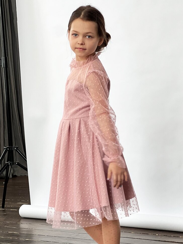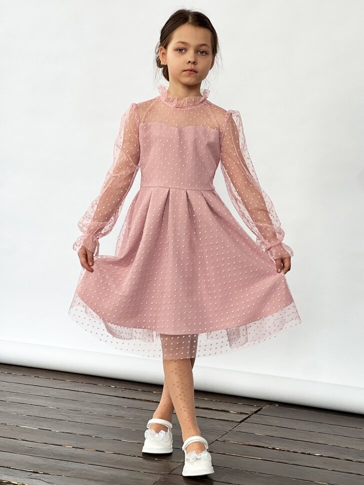 Платье для девочки нарядное бушон ST77, цвет пудровый (122-128)