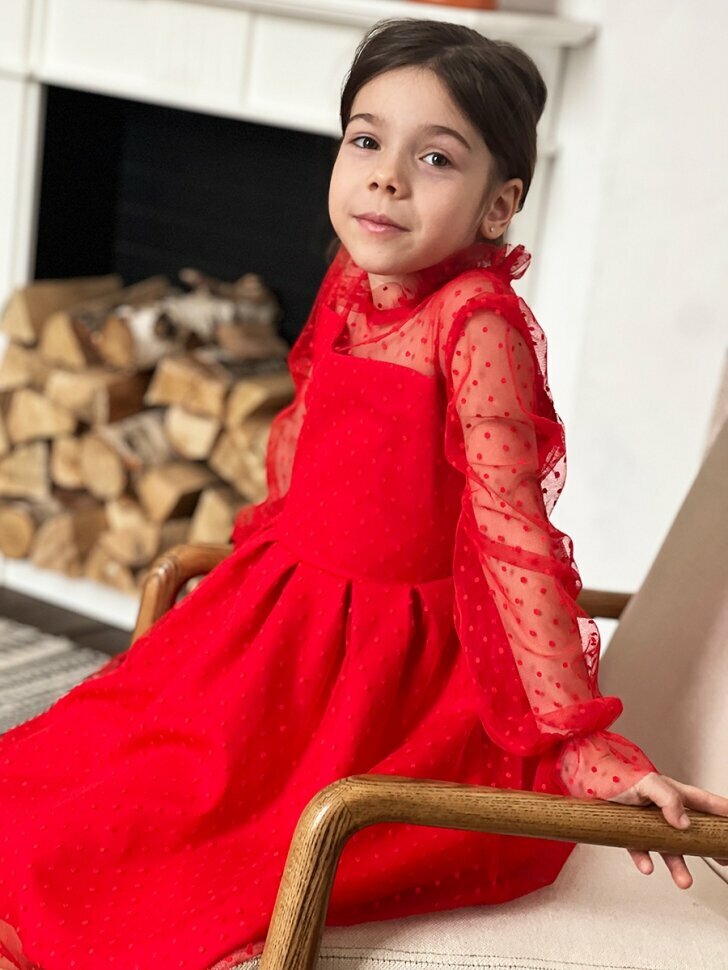 СохранитьПлатье Бушон Праздник, размер 116-122, красный интересное: