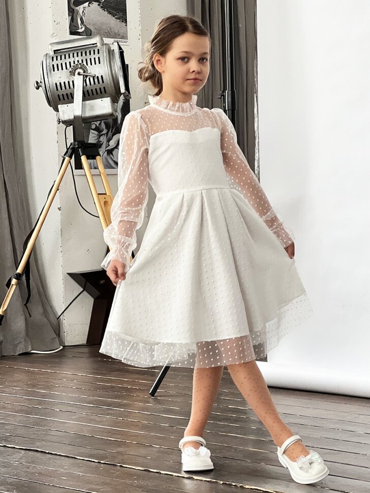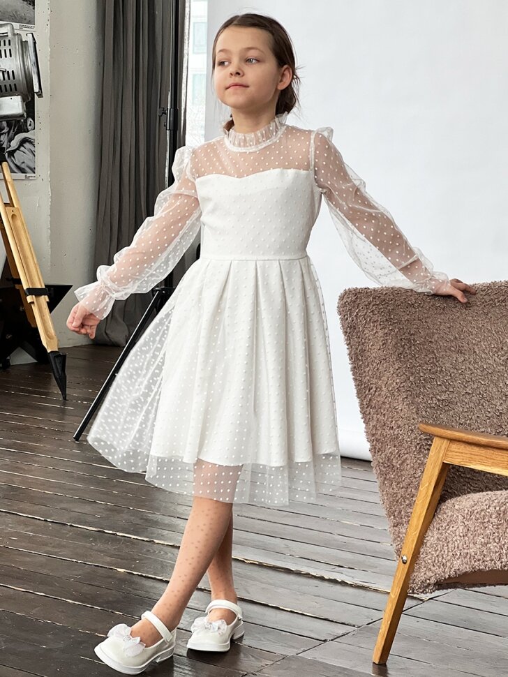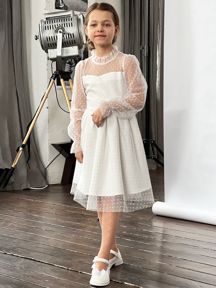Платье Бушон Праздник, размер 134-140, белый интересное: