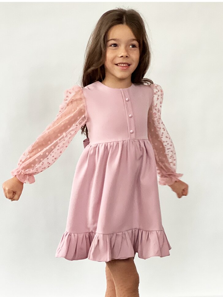Платье для девочки нарядное бушон ST52, цвет пудра (122-128)