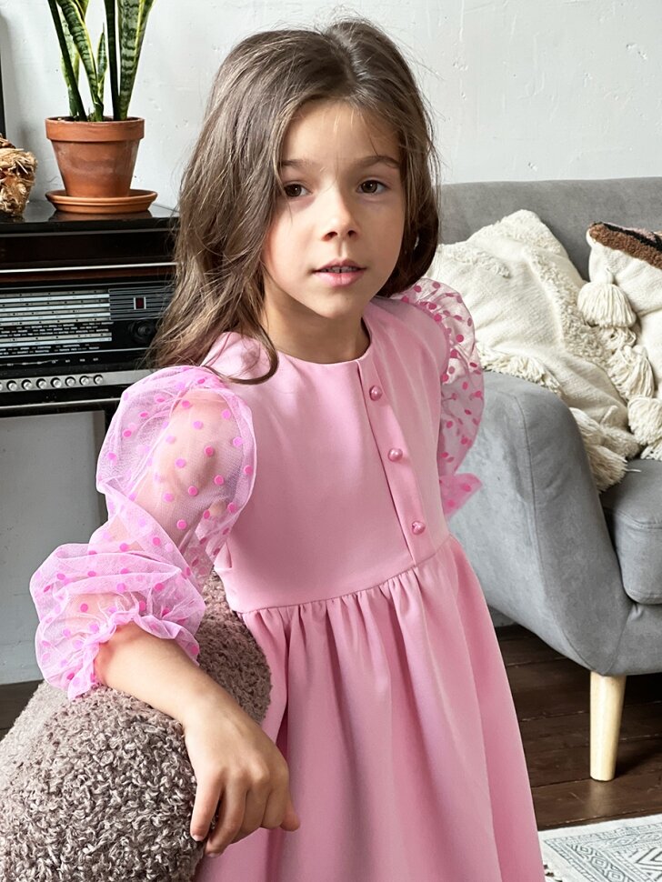 Платье для девочки нарядное бушон ST52, цвет розовый (122-128)