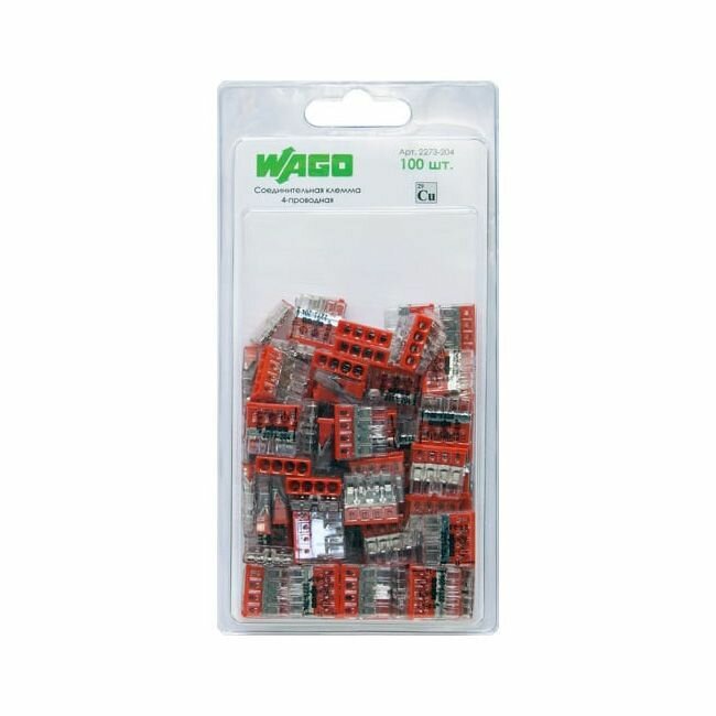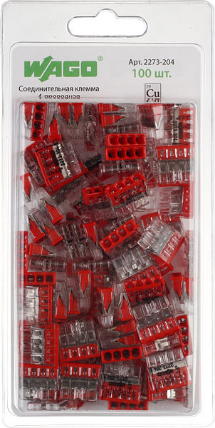 WAGO Соединительная клемма WAGO 4-х проводная (2273-204) 6 шт. в блистере