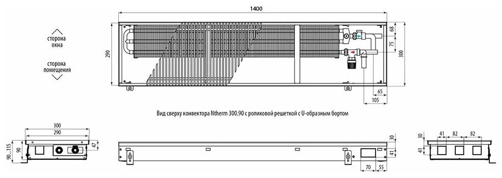 Водяной конвектор Varmann Ntherm 300х90х1400 N300.90.1400 RR U EV1