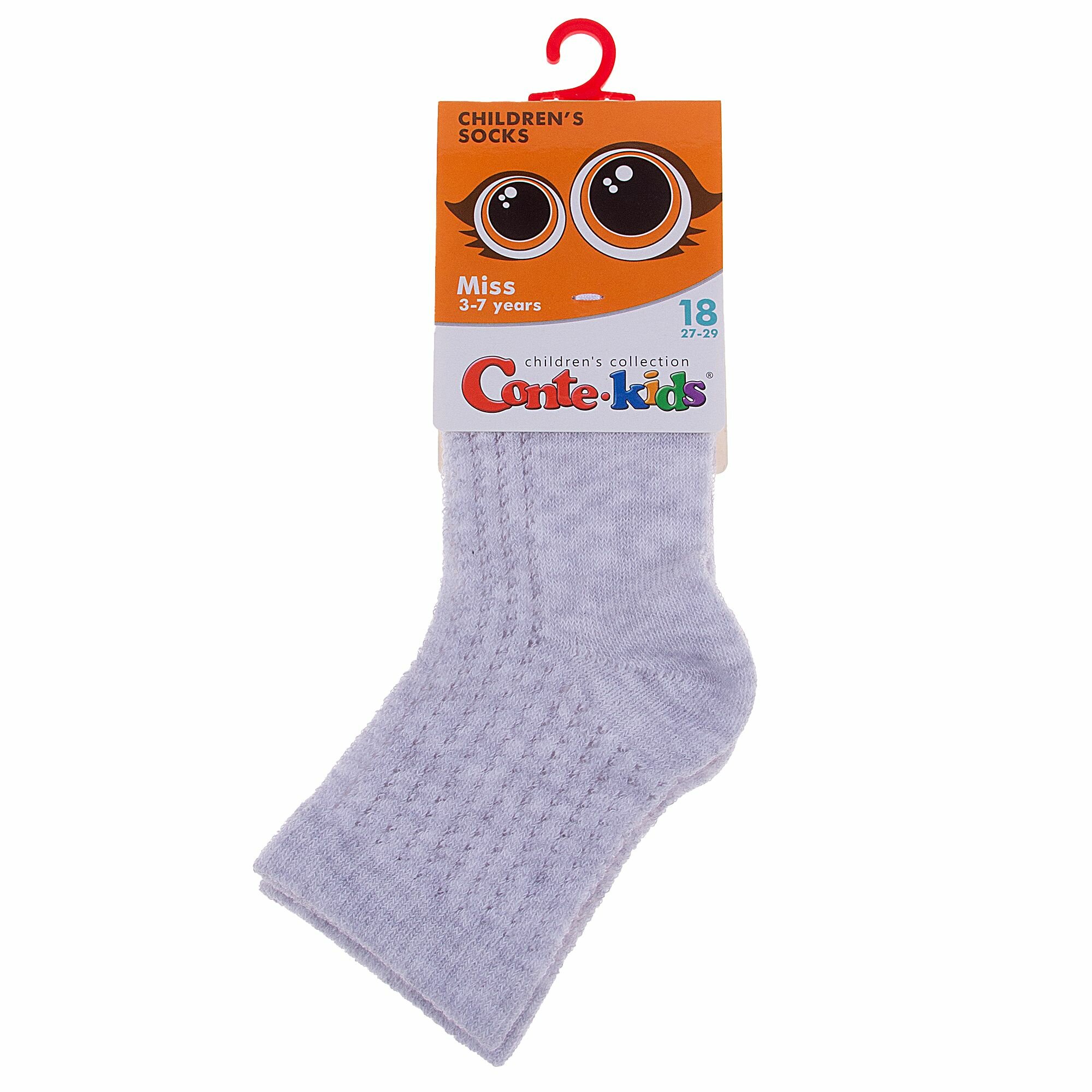 3-20С-204СП Комплект из 3 пар детских носков kids светло-серые девочка малыши однотонные укороченные хлопок хб хлопковые сетка сеточка летние лето конте кидс набор упаковка рис. 903
