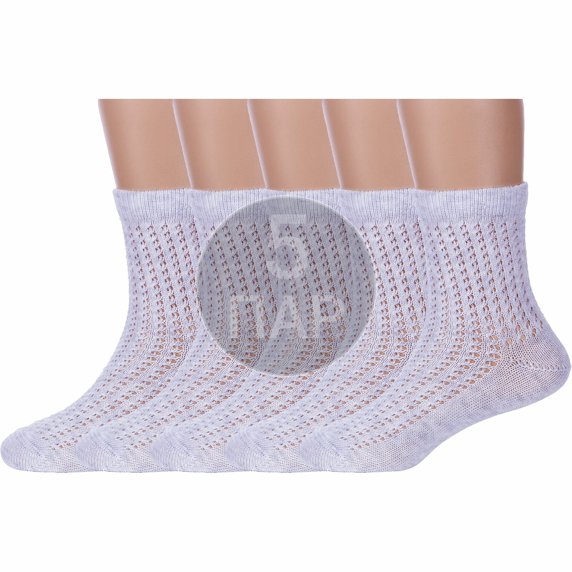 5-20С-204СП Комплект из 5 пар детских носков kids светло-серые девочка малыши однотонные укороченные хлопок хб хлопковые сетка сеточка летние лето конте кидс набор упаковка рис. 903