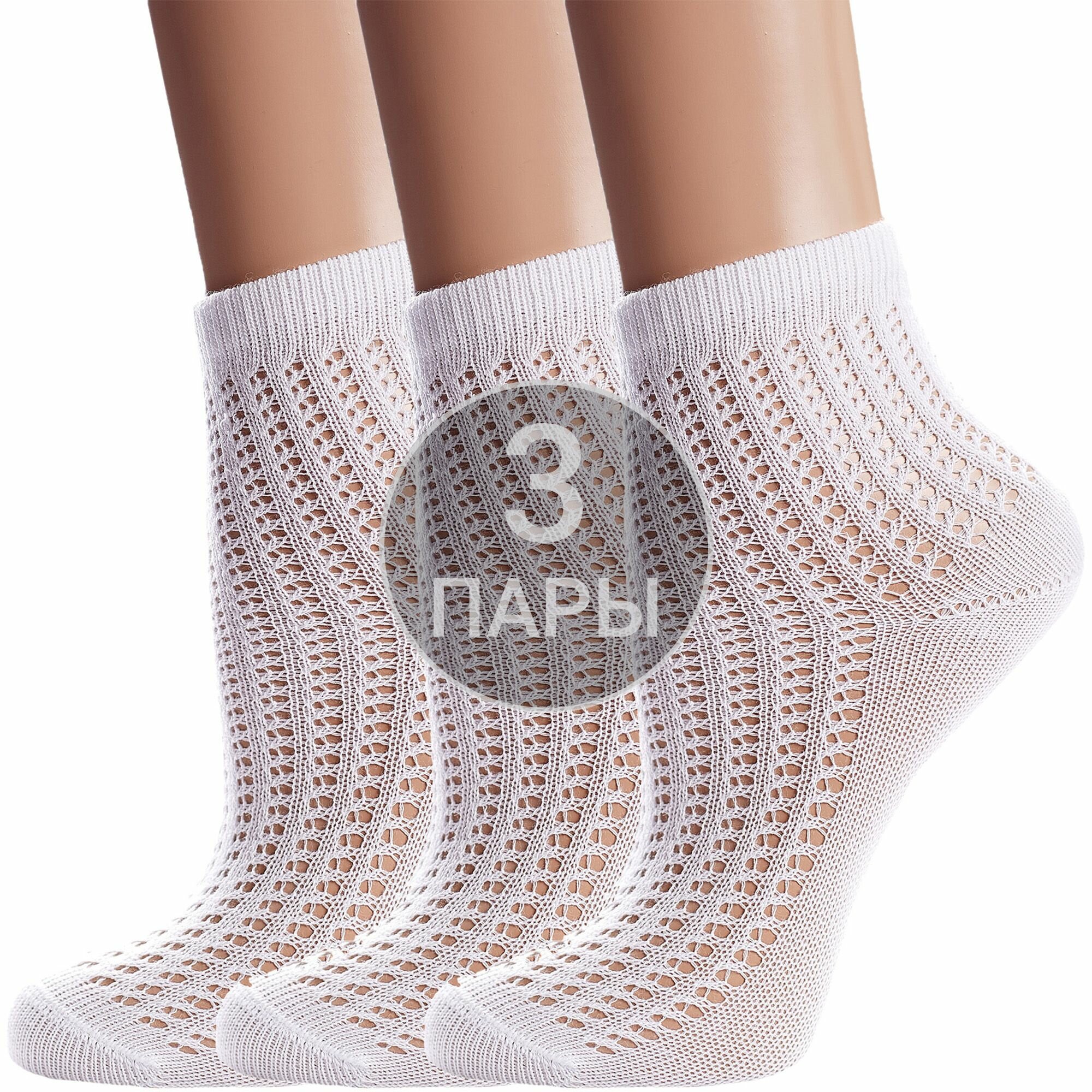 3-20С-204СП Комплект из 3 пар детских носков kids белые девочка малыши однотонные укороченные хлопок хб хлопковые сетка сеточка летние лето конте кидс набор упаковка рис. 903