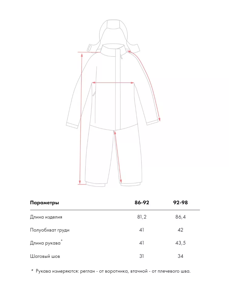 | Особенности модели | варежки в комплекте, ветрозащита, капюшон, карманы, манжеты, мембрана, пинетки в комплекте, светоотражающие элементы, съемный капюшон, штрипки |