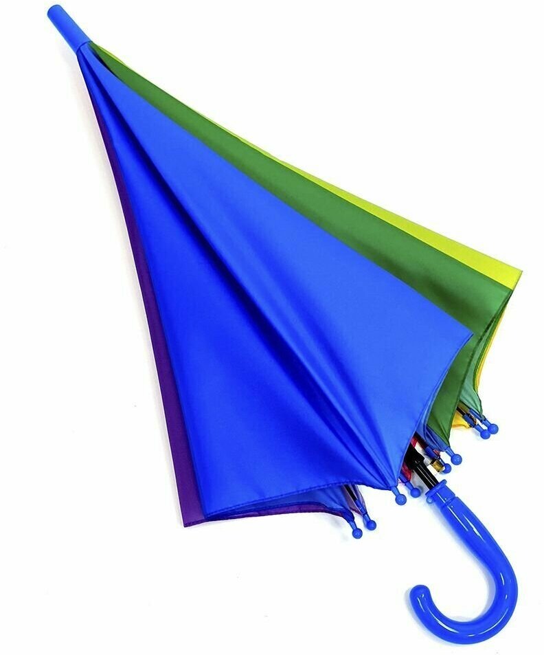 Зонт детский трость Радуга 16 цветов, голубая ручка