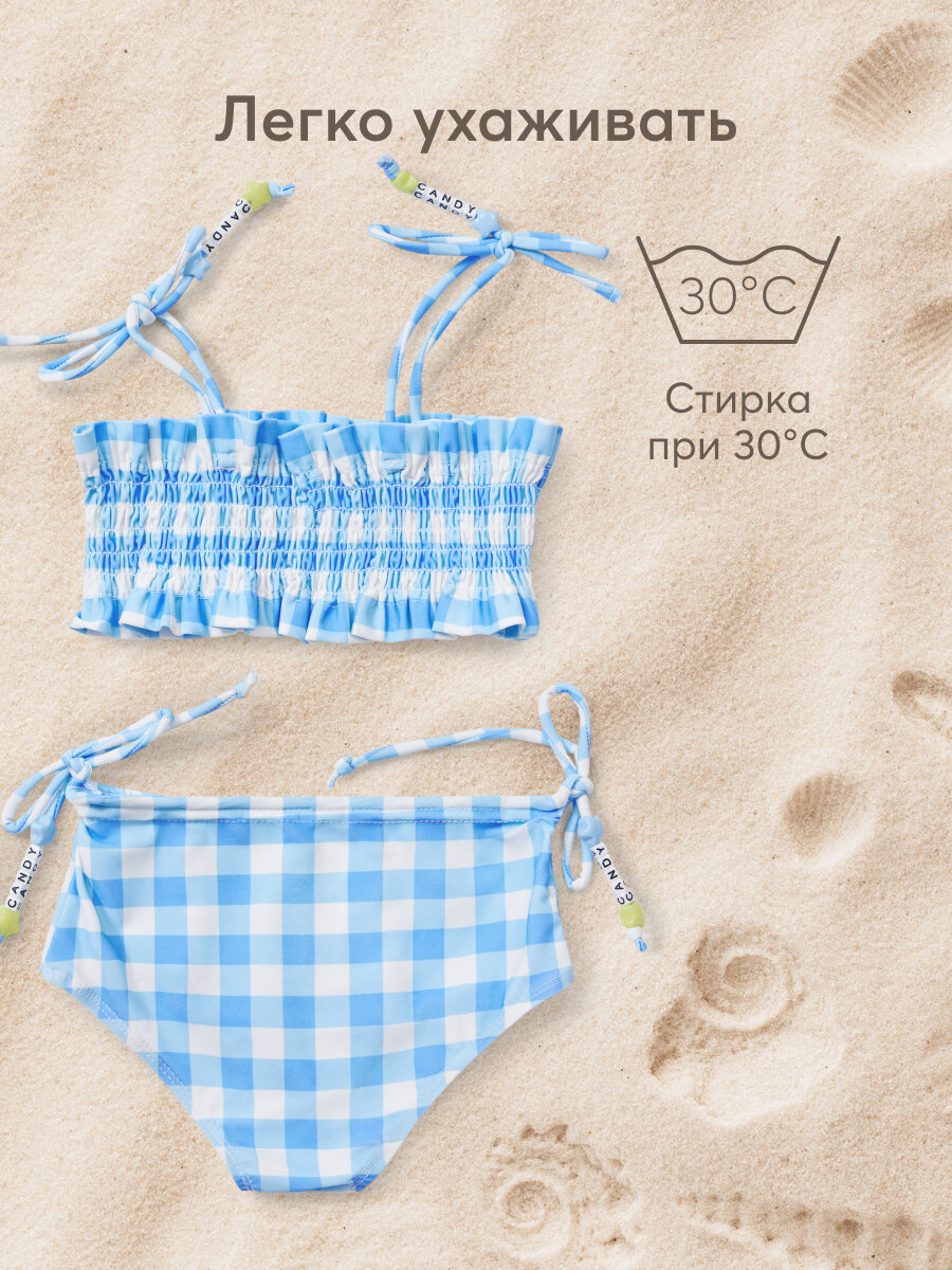 50666, Купальник раздельный для девочек Happy Baby, купальник детский, двухпредметный: лиф купальный, верх и плавки с защитой от солнца UPF 50+, солнцезащитный, голубая в клетку, рост 80-86