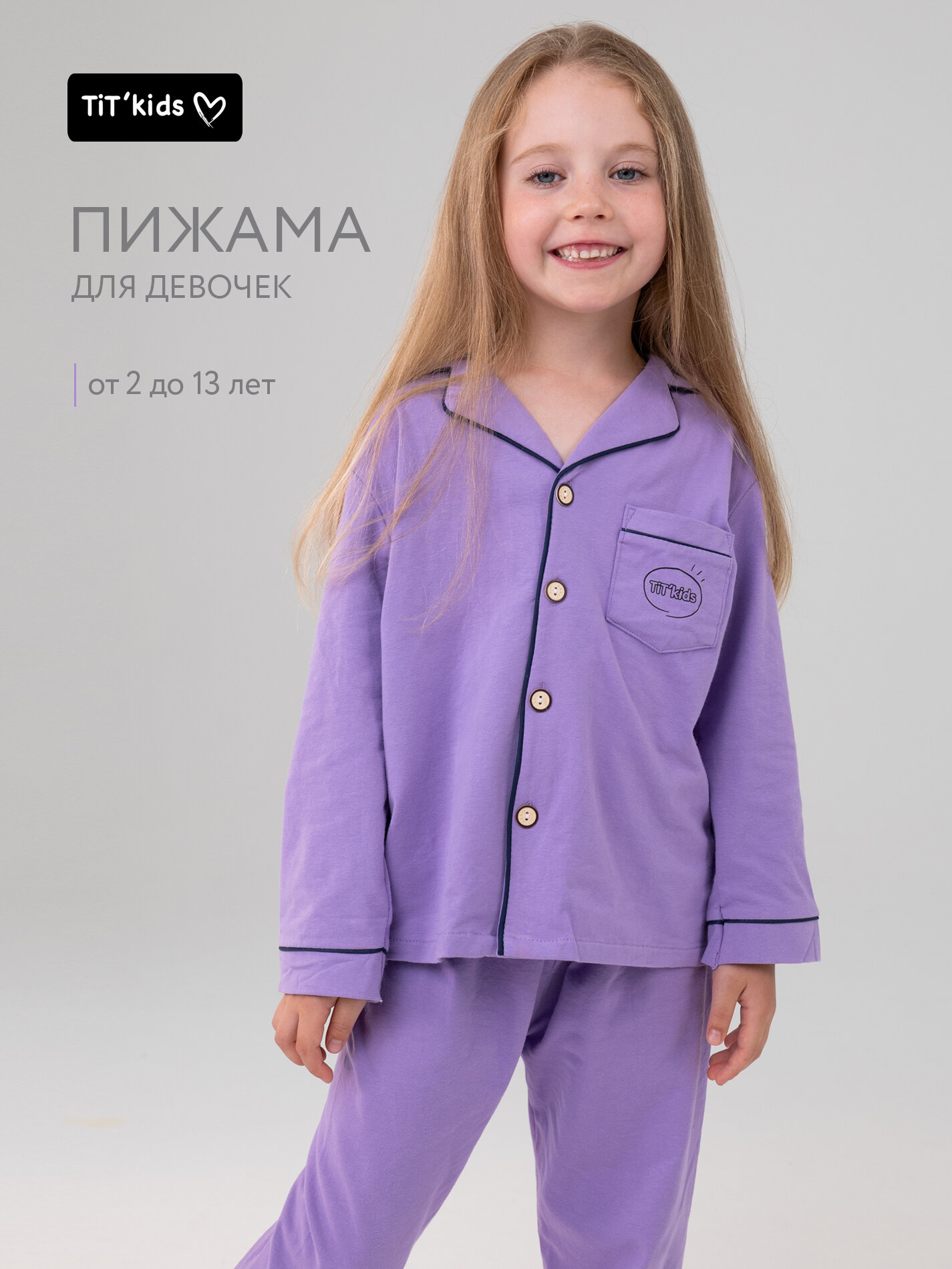Пижама для девочки детская "TiT’kids" со штанами и рубашкой,цвет фиолетовый, 122-128