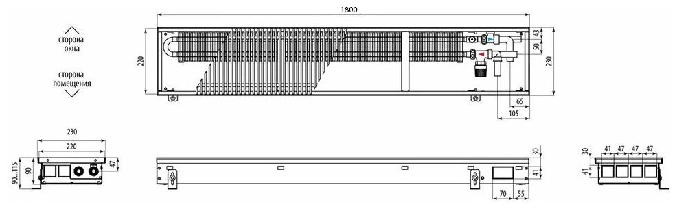 Водяной конвектор Varmann Ntherm 230х90х1800 N230.90.1800 RR U EV1
