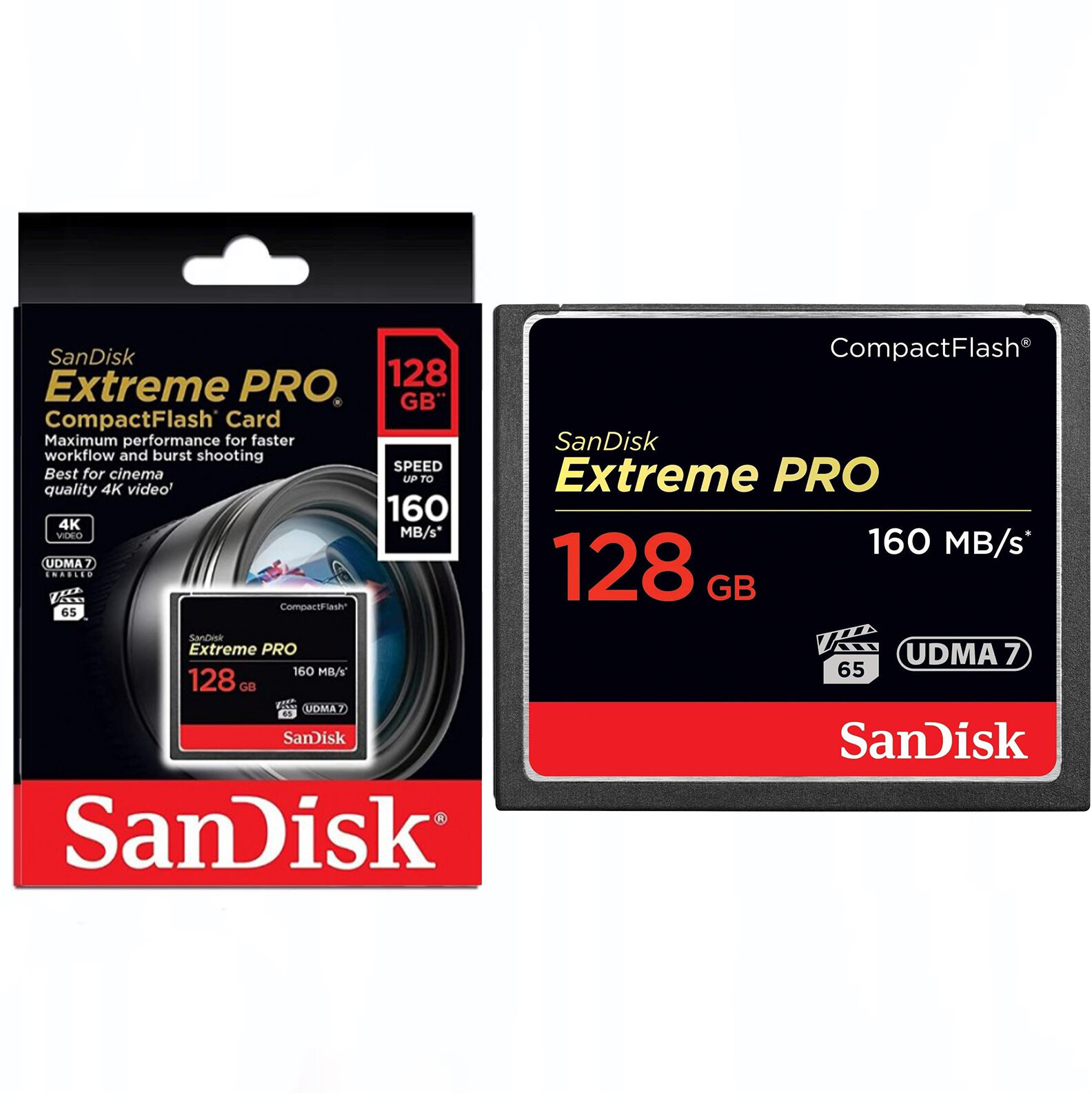 Карта памяти SanDisk Compact Flash 128 ГБ, R/W 160/150 МБ/с, 1 шт.