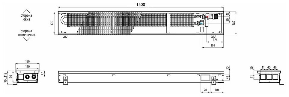 Водяной конвектор Varmann Ntherm 180х90х1400 N180.90.1400 RR U EV1