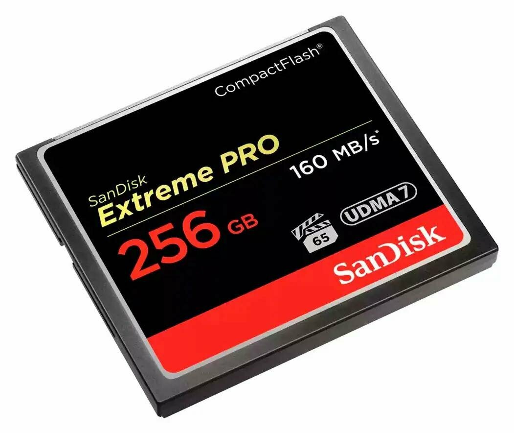 Карта памяти SanDisk Compact Flash 256 ГБ, R/W 160/140 МБ/с, 1 шт., черный