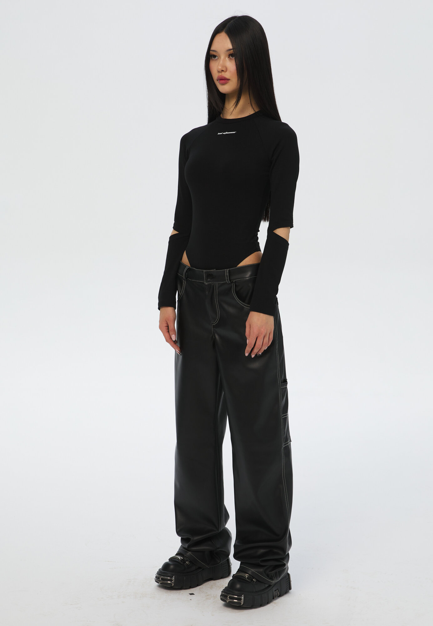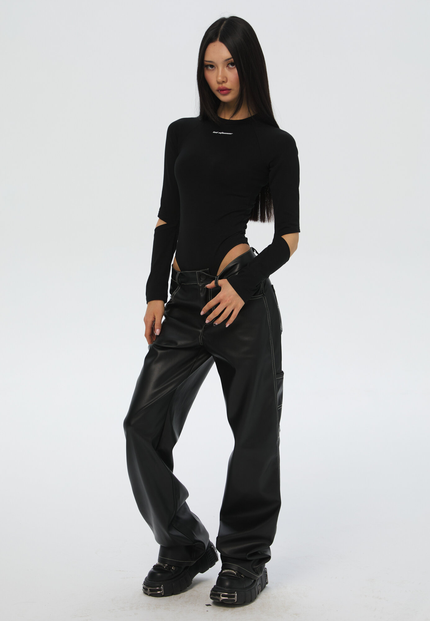 Боди с высоким вырезом бедра и длинным рукавом твое, арт. 102862, черный, S