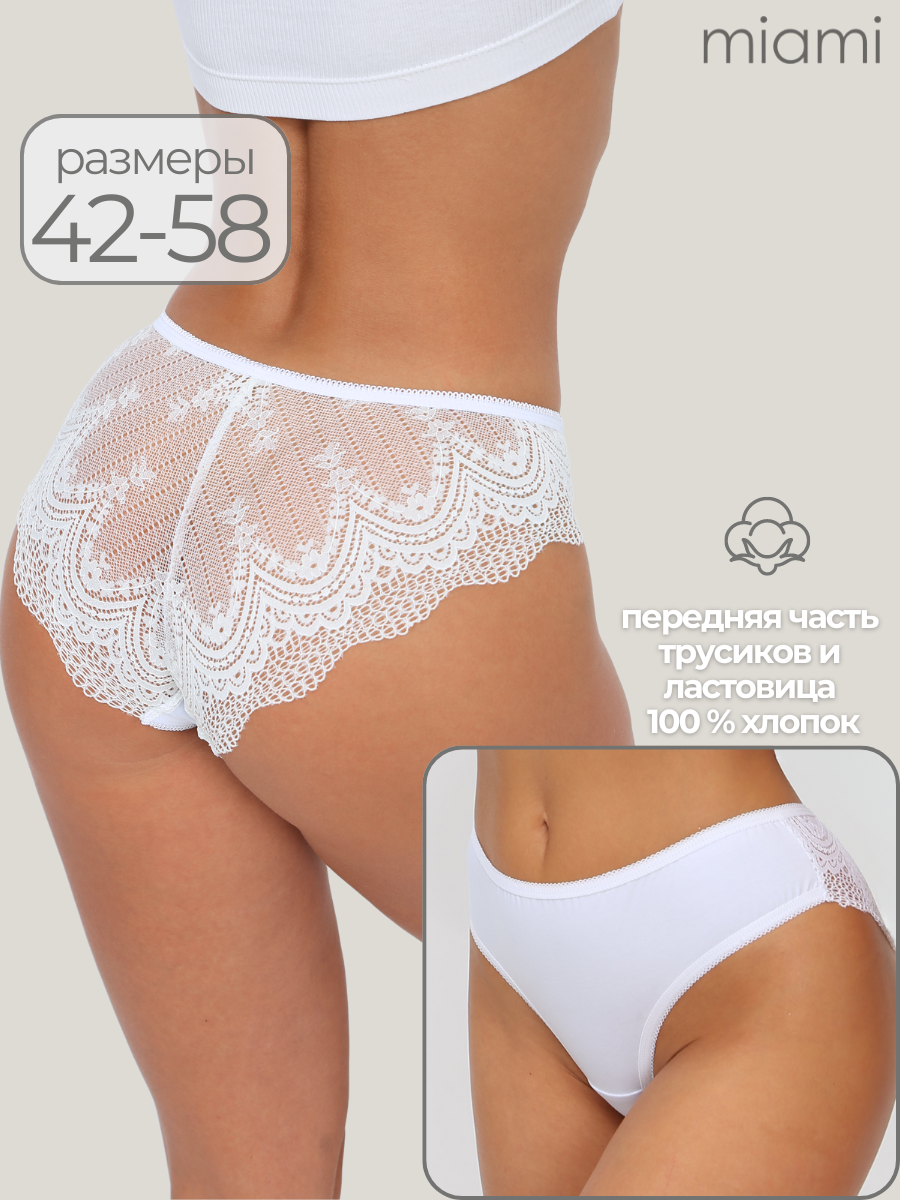 Трусы женские слипы, размер 58, средняя посадка, хлопок, кружево, Miami, белый