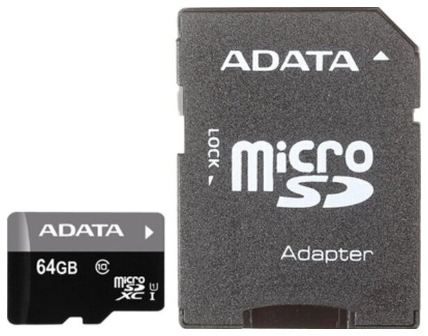 Карта памяти A-DATA microSDXC Class 10 64 GB + SD adapter (AUSDX 64 GUICL 10-RA1)