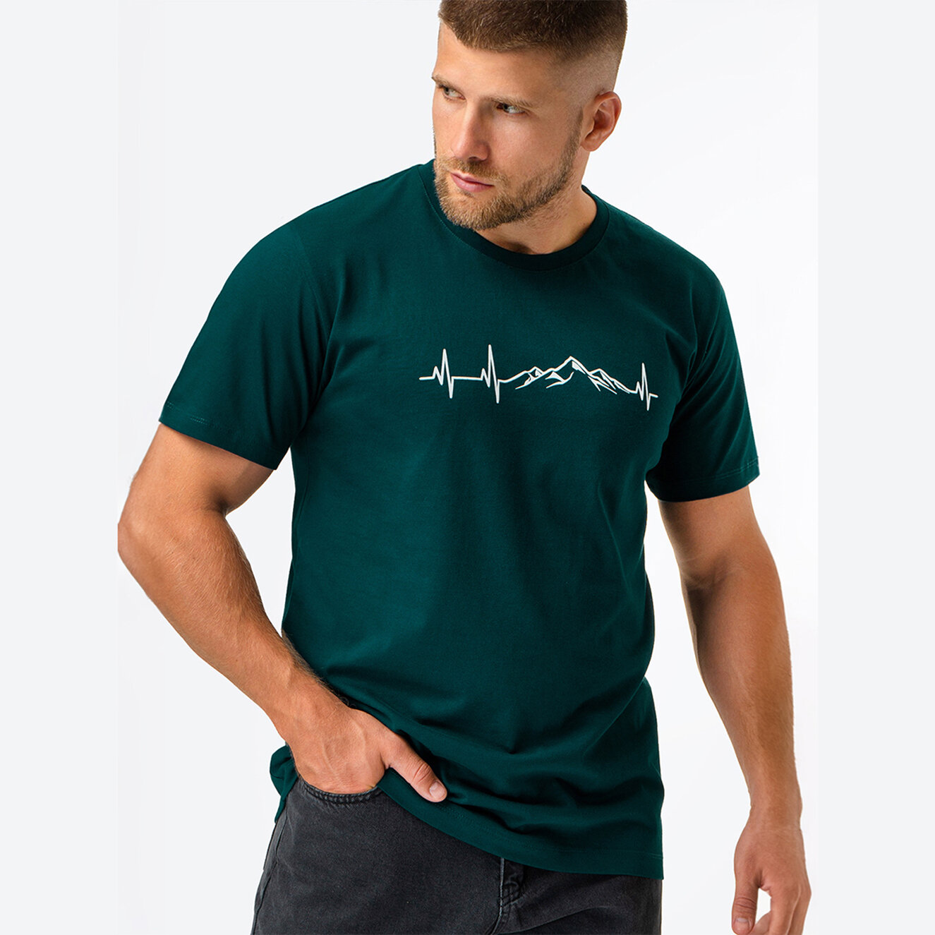 Футболка мужская с принтом хлопковая HappyFox HF9111A горы.кардиограмма,хаки 50