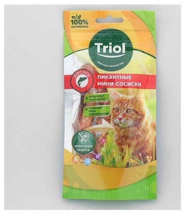Triol (лакомства) Пикантные мини-сосиски из лосося для кошек 50г 20171006 0,050 кг 42687 (1 шт)