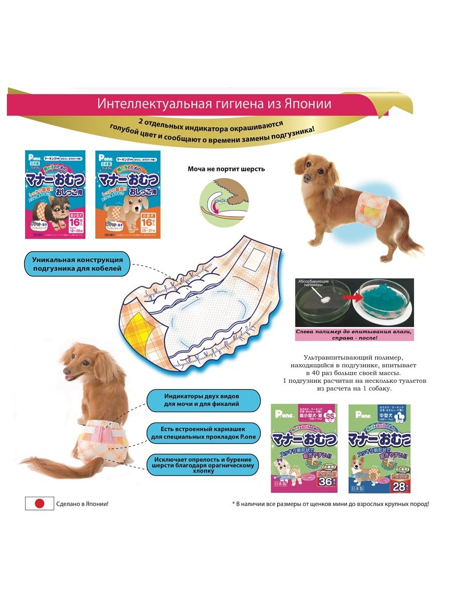 Многоразовые подгузники Japan Premium Pet для собак и кошек до 3 кг (размер SSS), обхват талии 15-30 см, для приучения к туалету, 16 штук интересное: