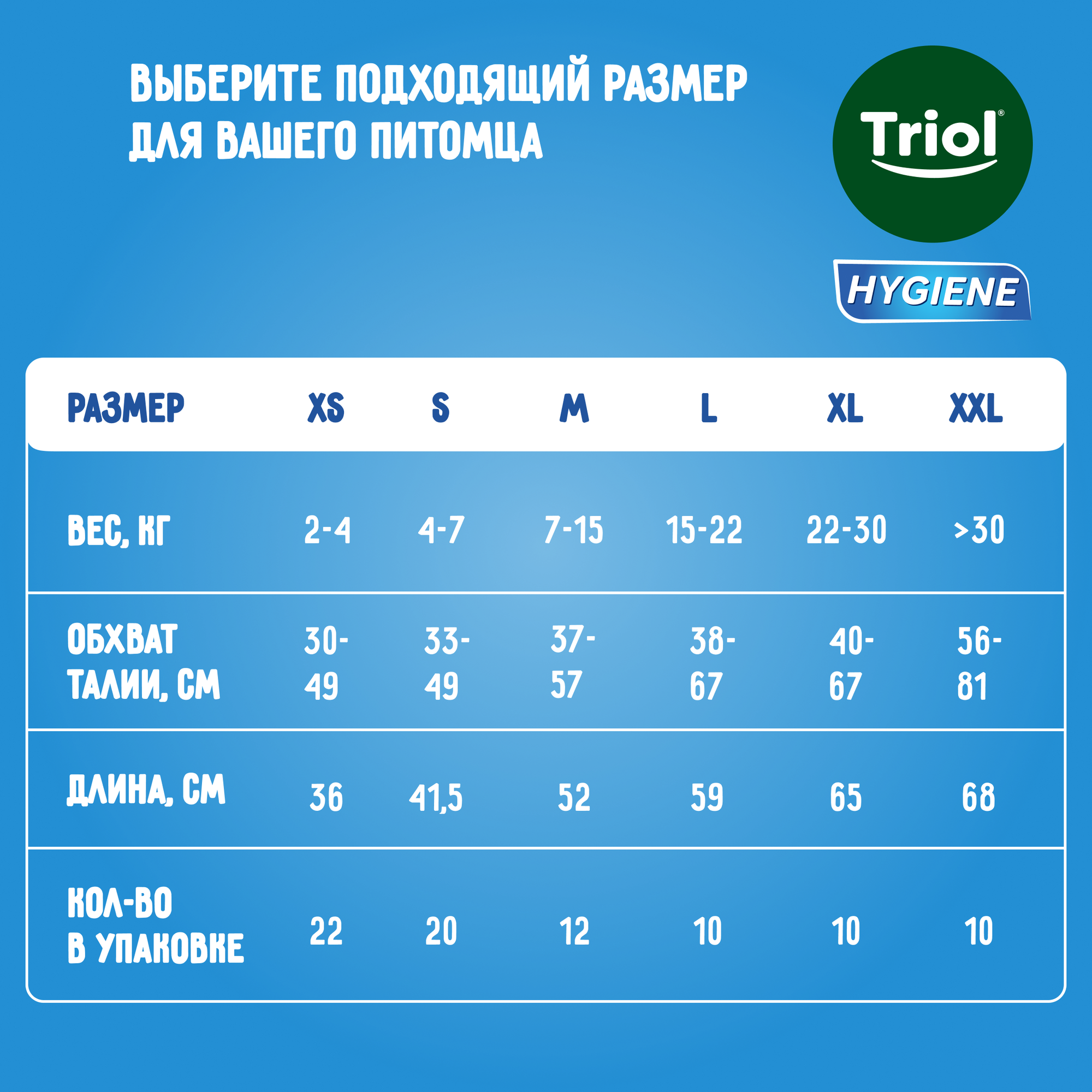 Triol подгузник для собак, размер XS, вес собаки 2-4 кг, упаковка 22 шт