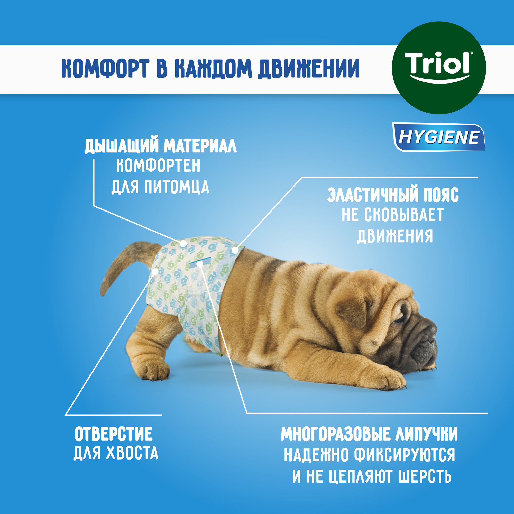 Подгузник для собак TRIOL р-р XS (2- 4 кг) 22 шт.