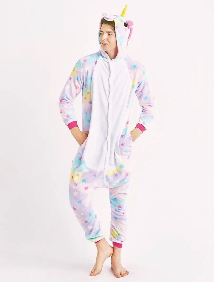 Бело розовый Единорог Пегас пижама Кигуруми с крыльями
