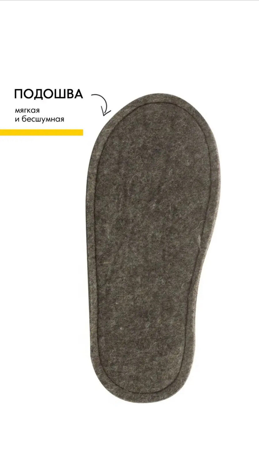 Тапочки домашние из овечьей шерсти на подошве из войлока, тапки меховые плюшевые, Naturella&Home, серые, 43-44