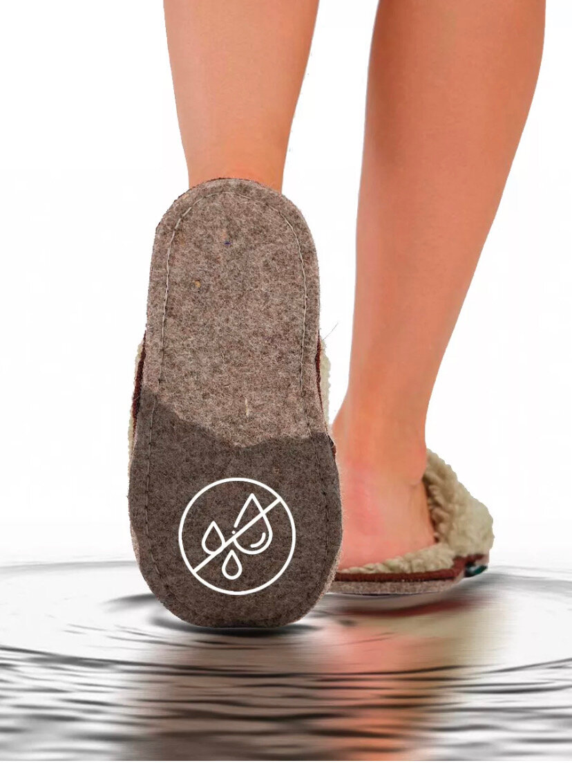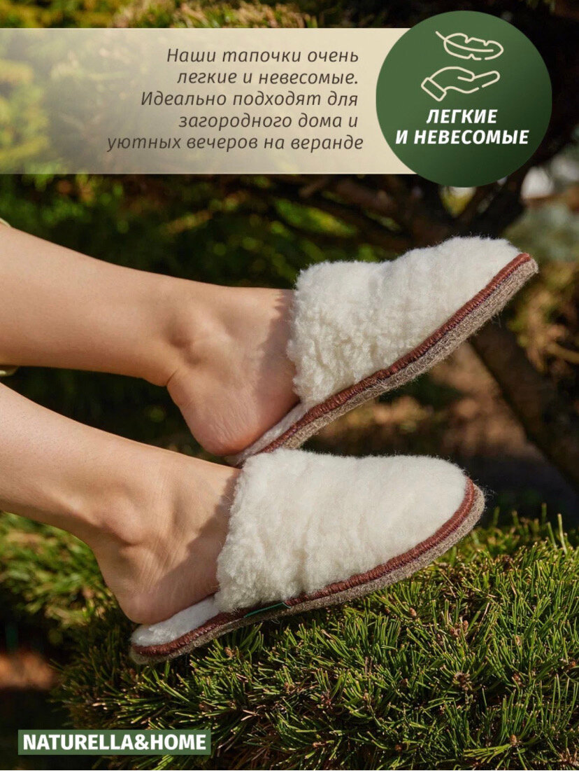 Тапочки домашние из овечьей шерсти на подошве из войлока, тапки меховые плюшевые, Naturella&Home, 37-38