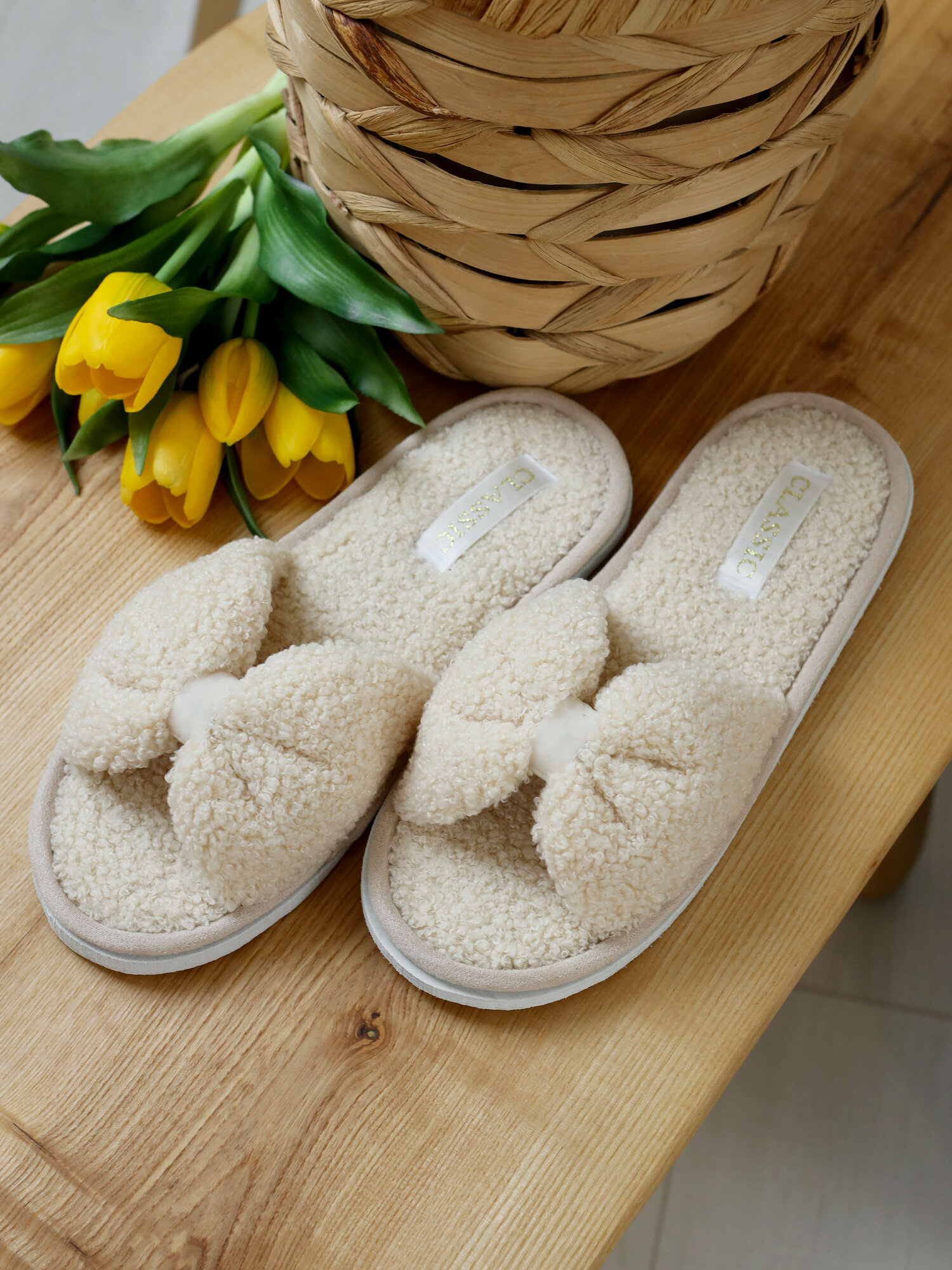 Тапочки ALBERY тапочки женские/тапочки для дома/тапочки с бантом/домашние тапочки/мягкие женские тапочки/комнатные тапочки/домашняя обувь, размер 38-39, бежевый