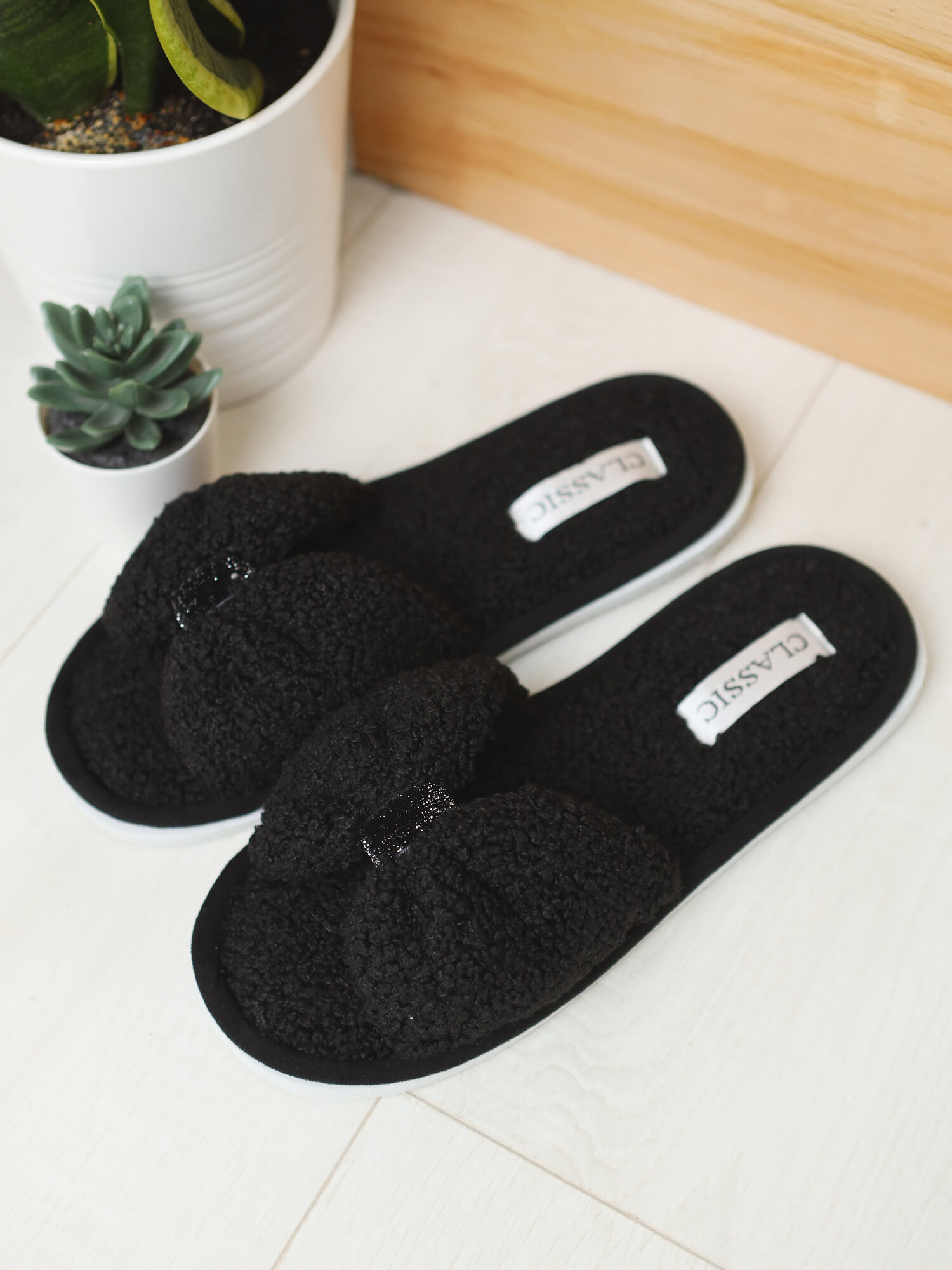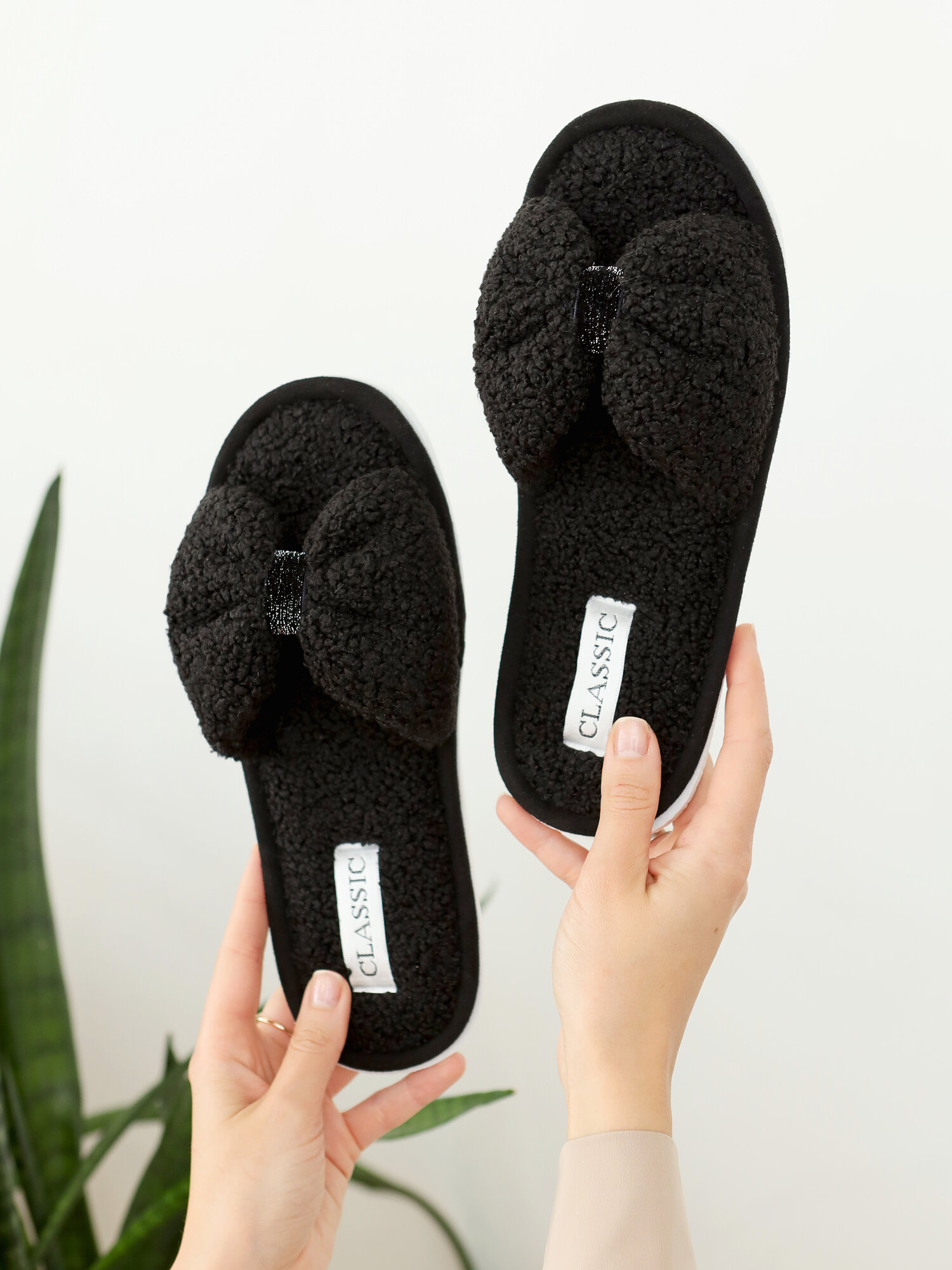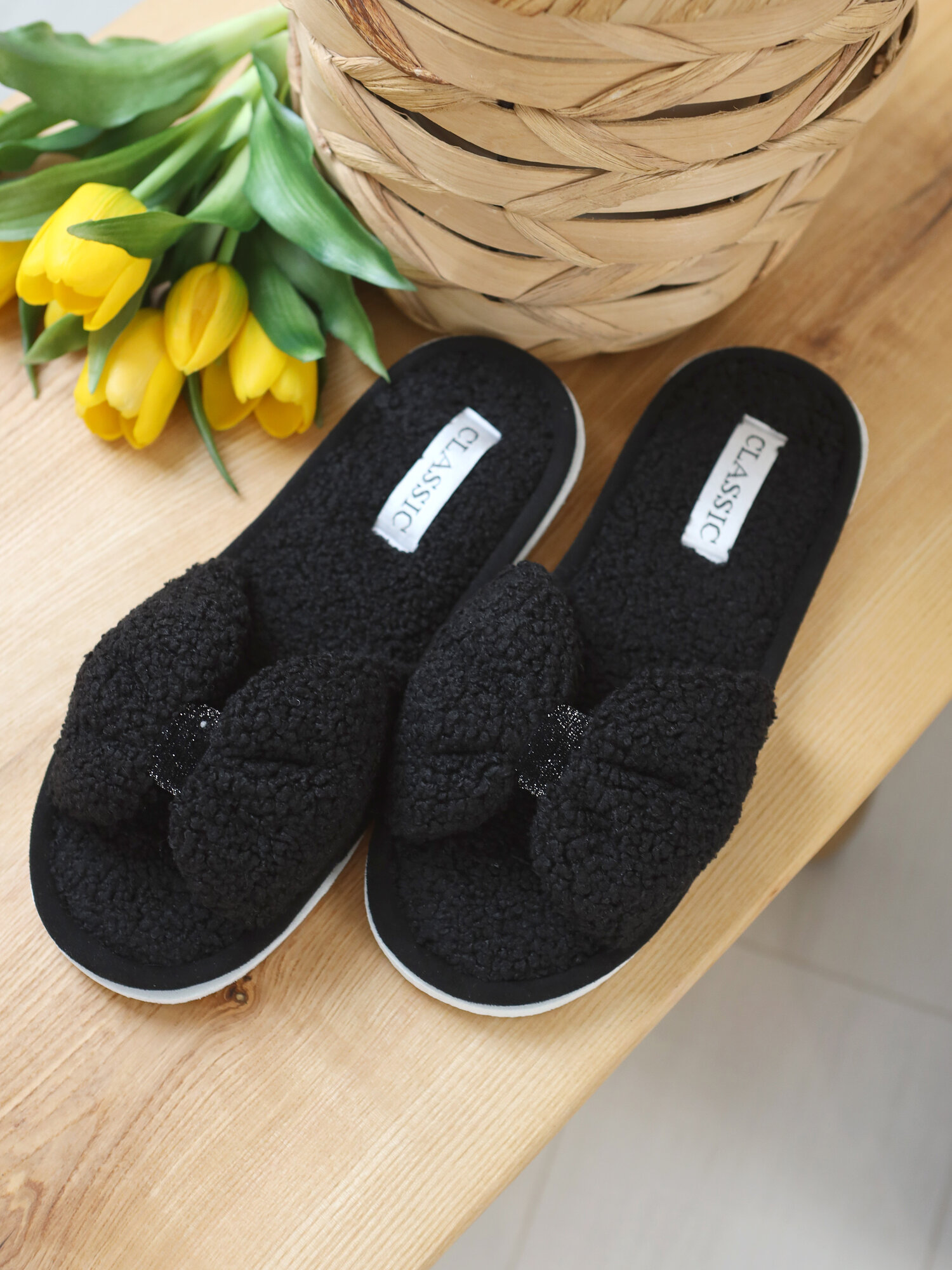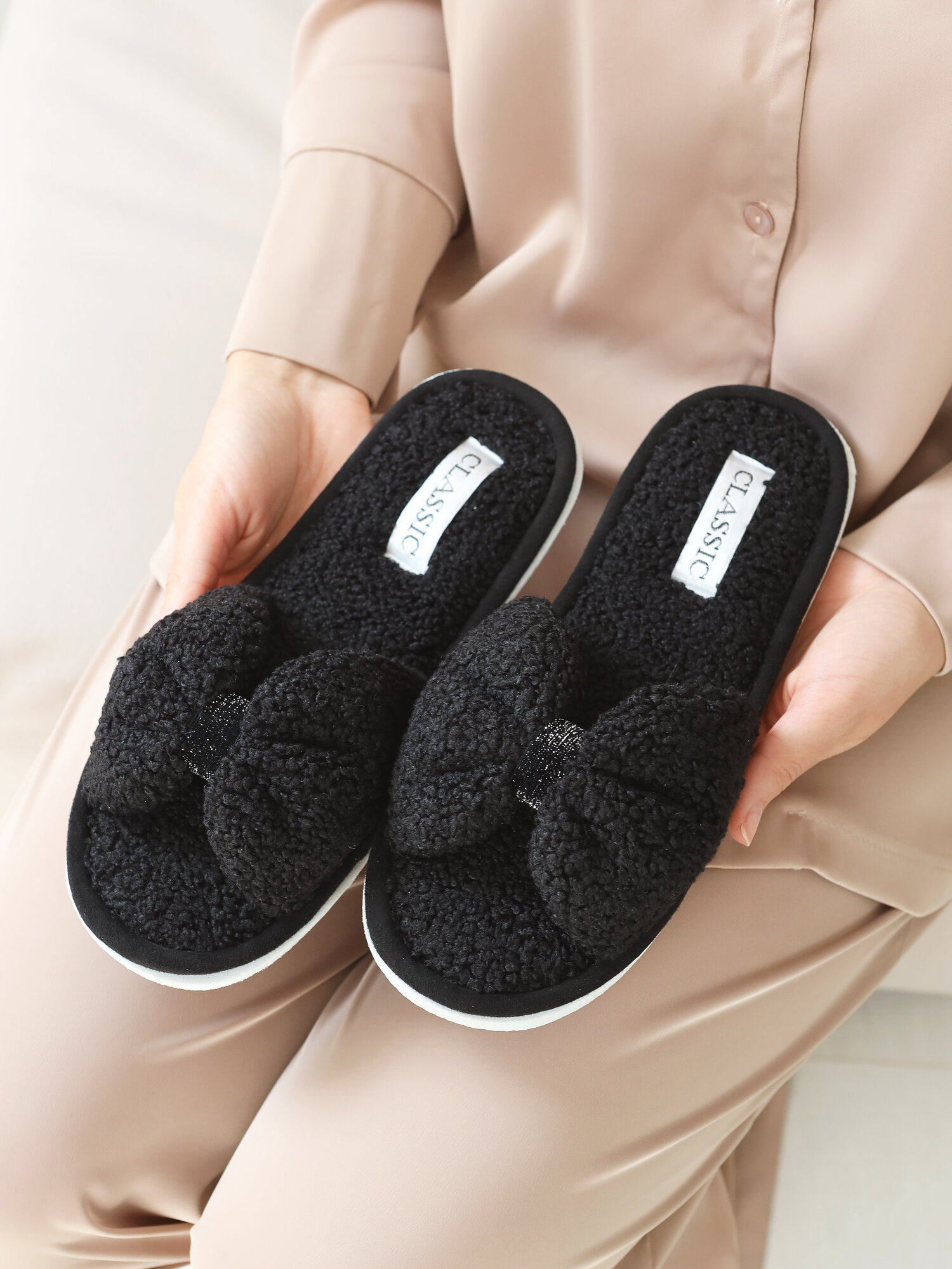 Тапочки ALBERY тапочки женские/тапочки для дома/тапочки с бантом/домашние тапочки/мягкие женские тапочки/комнатные тапочки/домашняя обувь, размер 36-37, черный