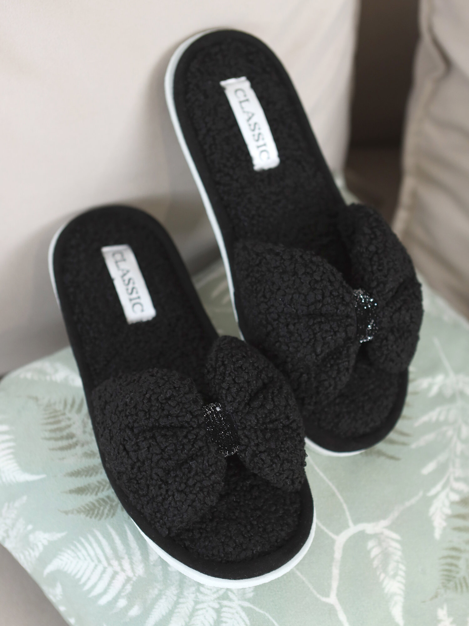 Тапочки ALBERY тапочки женские/тапочки для дома/тапочки с бантом/домашние тапочки/мягкие женские тапочки/комнатные тапочки/домашняя обувь, размер 40-41, черный