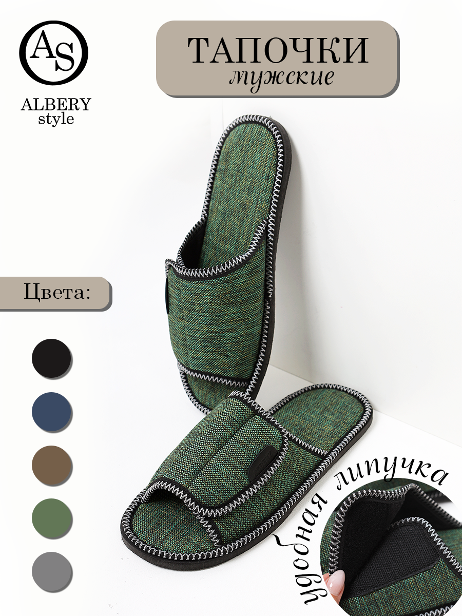 СохранитьТапочки ALBERY Тапочки мужские на липучке ALBERY, размер 40-41, зелeный интересное: