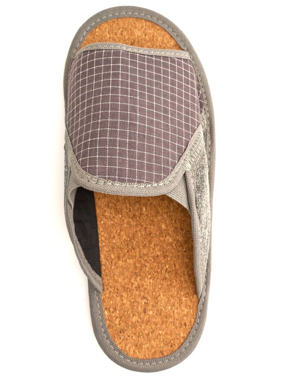 Мужские домашние тапки "LepiloV", открытые, на пробковой стельке, с резинками. Размер 41. Серая клетка мелкая.